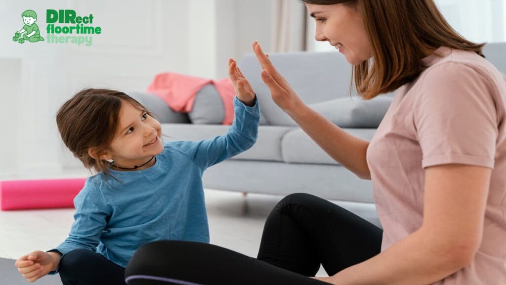 Mealtime, dressing, or snack time can become mini Floortime moments. For instance, let the child hand you utensils, you mirror, then ask “What do I do next?” to prompt them to lead.